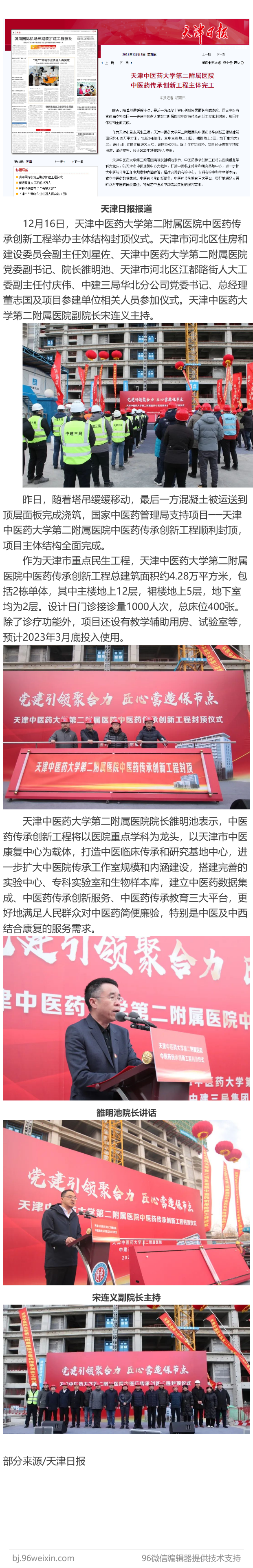 【媒体报道】天津日报、北方网、津云报道我院中医药传承创新工程主体完工